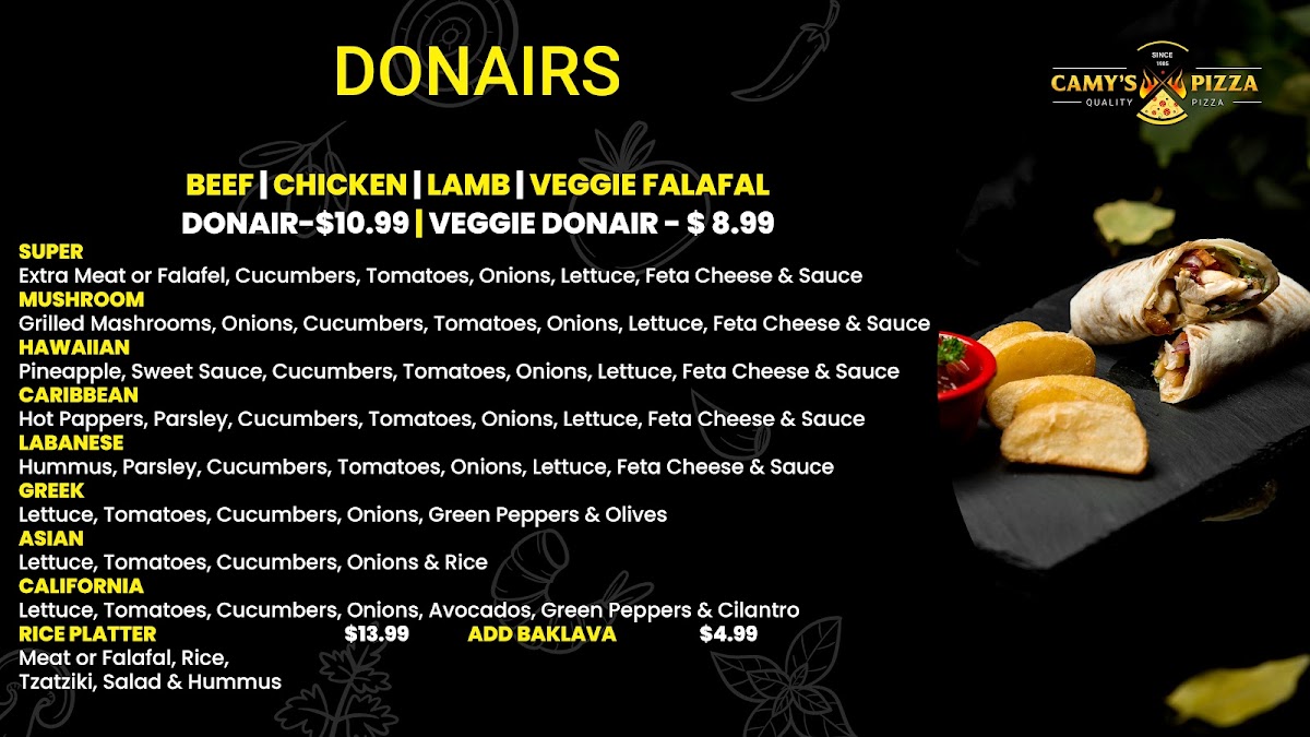 Introducing the menu at Camy's Pizza Langley, located at 20759 40 Ave #103, Langley, BC, offers a delightful fusion of flavors that make it a go-to destination for pizza lovers. Their diverse offerings include classic favorites like the Tropical Hawaiian and New York Deli pizzas, with options for every size and palate.